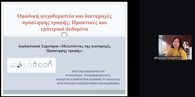 Εισήγηση της Επ.Καθηγήτριας Κλινικής Ψυχολογίας του Α.Π.Θ, Χρ.Παπαχρήστου, σχετικά με την ομαδική ψυχοθεραπεία στις Διαταραχές Πρόσληψης Τροφής.